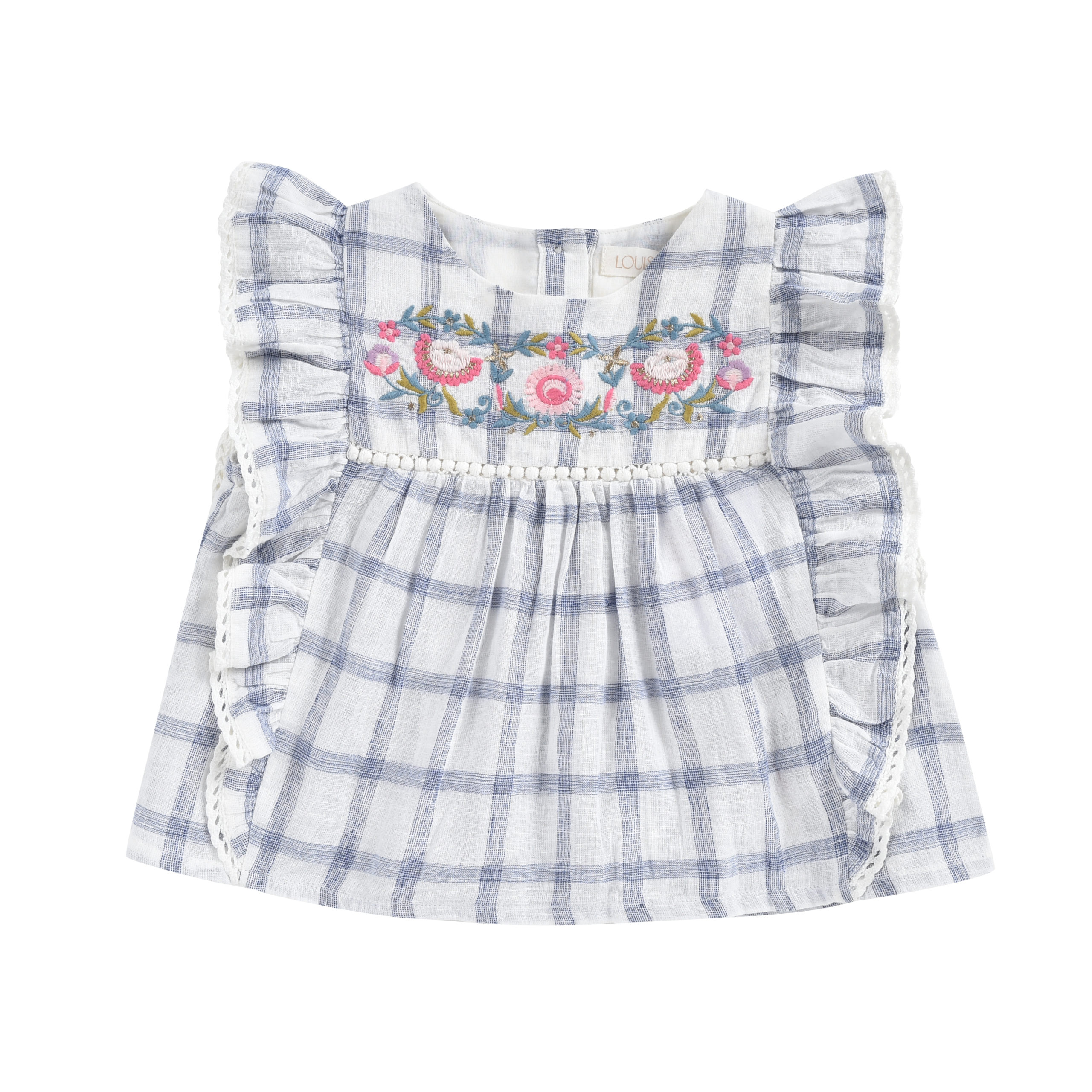 BLOUSE A CARREAUX BRODES BLEU/2A