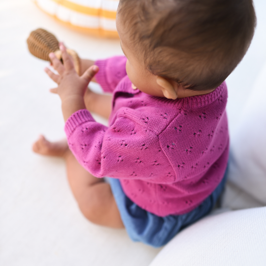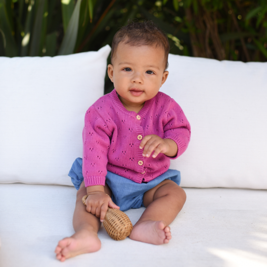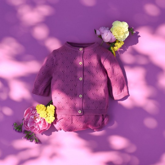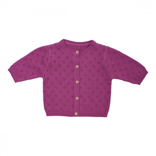 CARDIGAN EN TRICOT AJOURE FUCHSIA