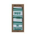 Inspirées de la chaussette de tennis, cette paire en coton sait se distinguer. Avec son message amusant, elles seront un parfait cadeau pour la fête des pères, pour sa moitié ou pour rigoler. A tout ceux qui ont du mal à enfiler la paire de baskets, cette paire de chaussettes est faite pour vous ! Avec ce message vert “Sportif du dimanche”, vous afficherez votre autodérision et amuserez vos proches.