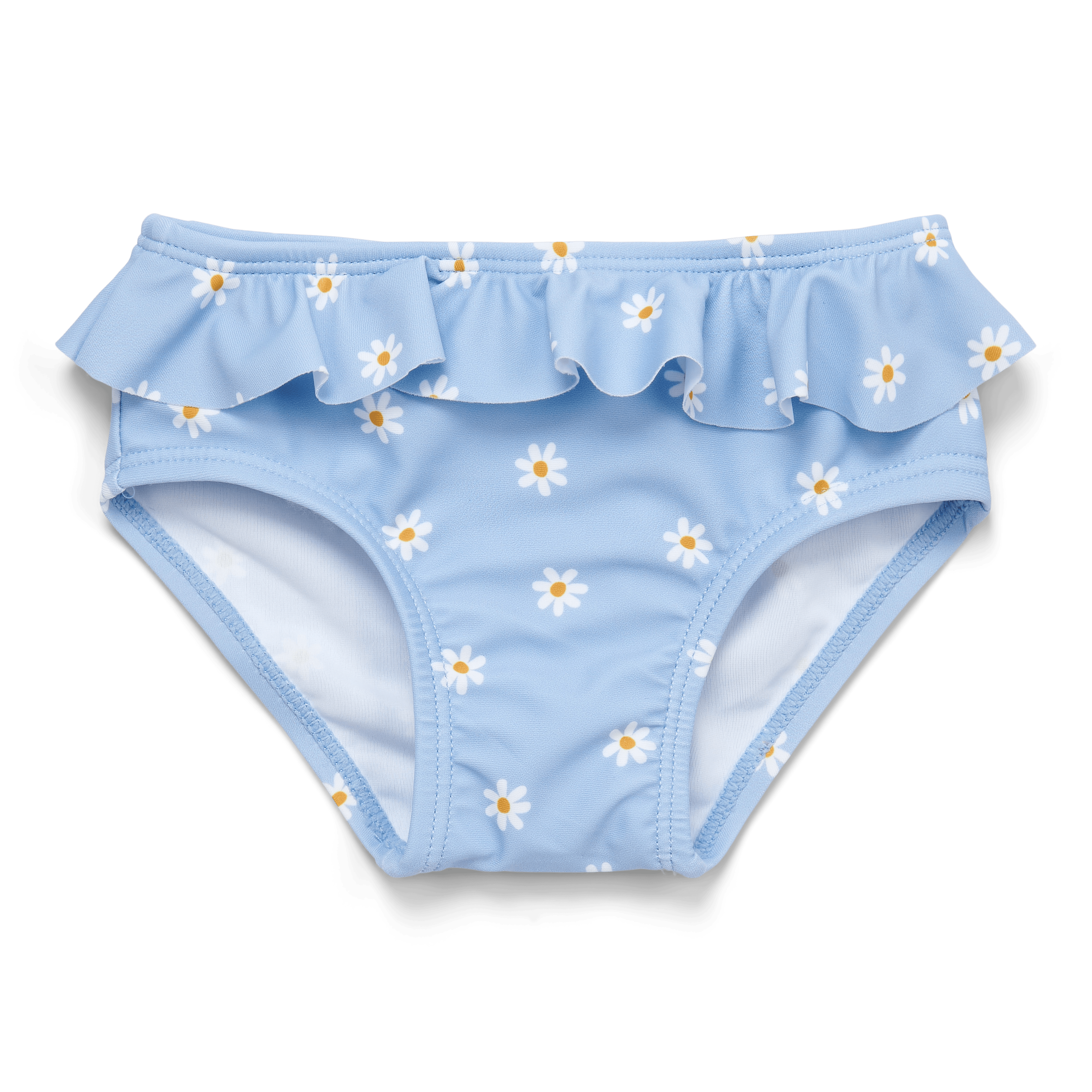 Plonge dans l’aventure et profite de l’eau rafraîchissante ! Que ce soit la piscine ou la mer, que l’eau soit ton terrain de jeu. Cette culotte de bikini est confortable pour chaque mouvement, que ce soit pour nager ou jouer. Elle rendra les journées d’été au bord de l’eau encore plus ensoleillées. La combinaison fantaisie du fond bleu clair, du motif de marguerites et des charmants volants égaiera tous les mouvements de votre enfant lorsqu’il joue dans l’eau.