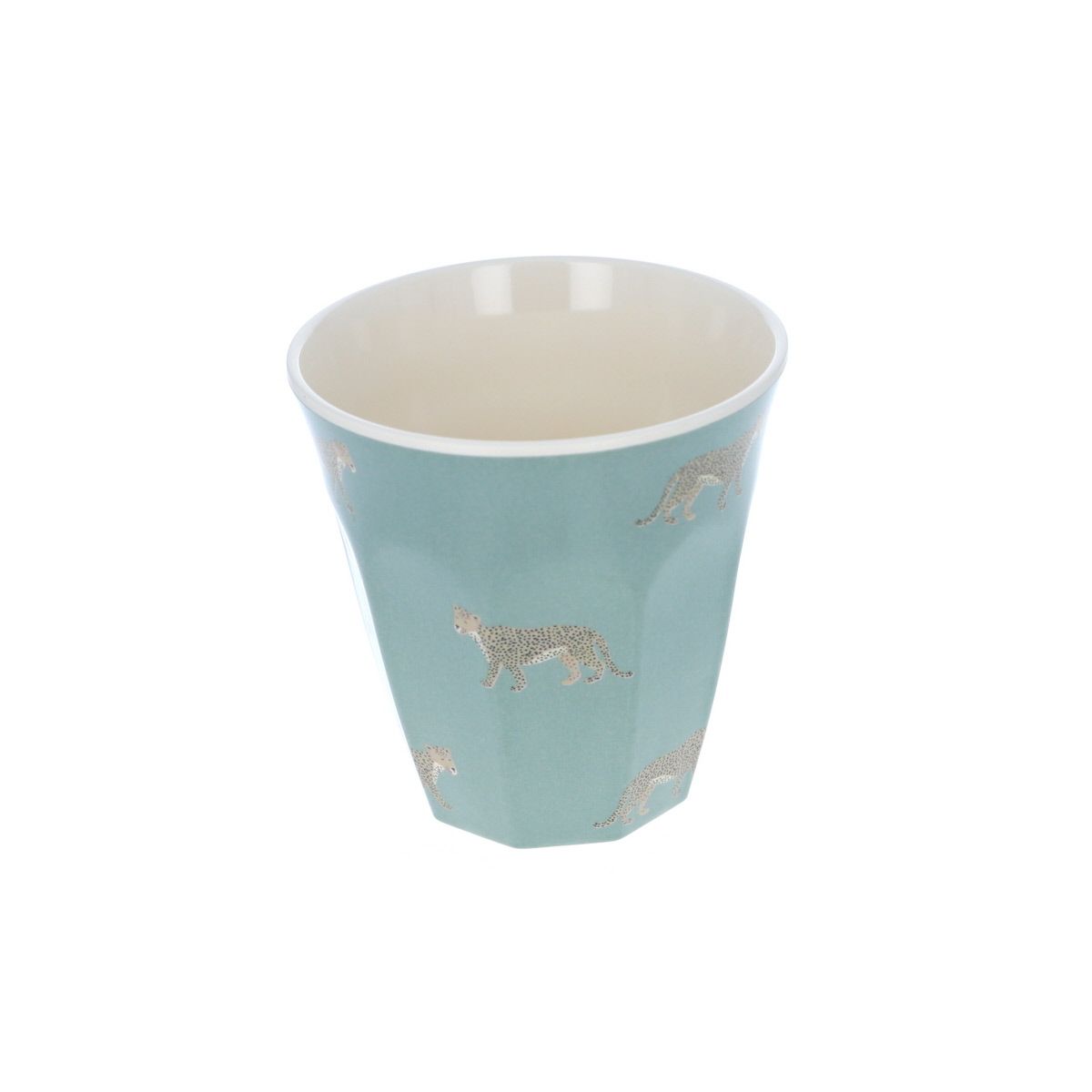 Un joli verre en mélamine de couleur verte à motifs de léopard pour boire ses boissons préférées !