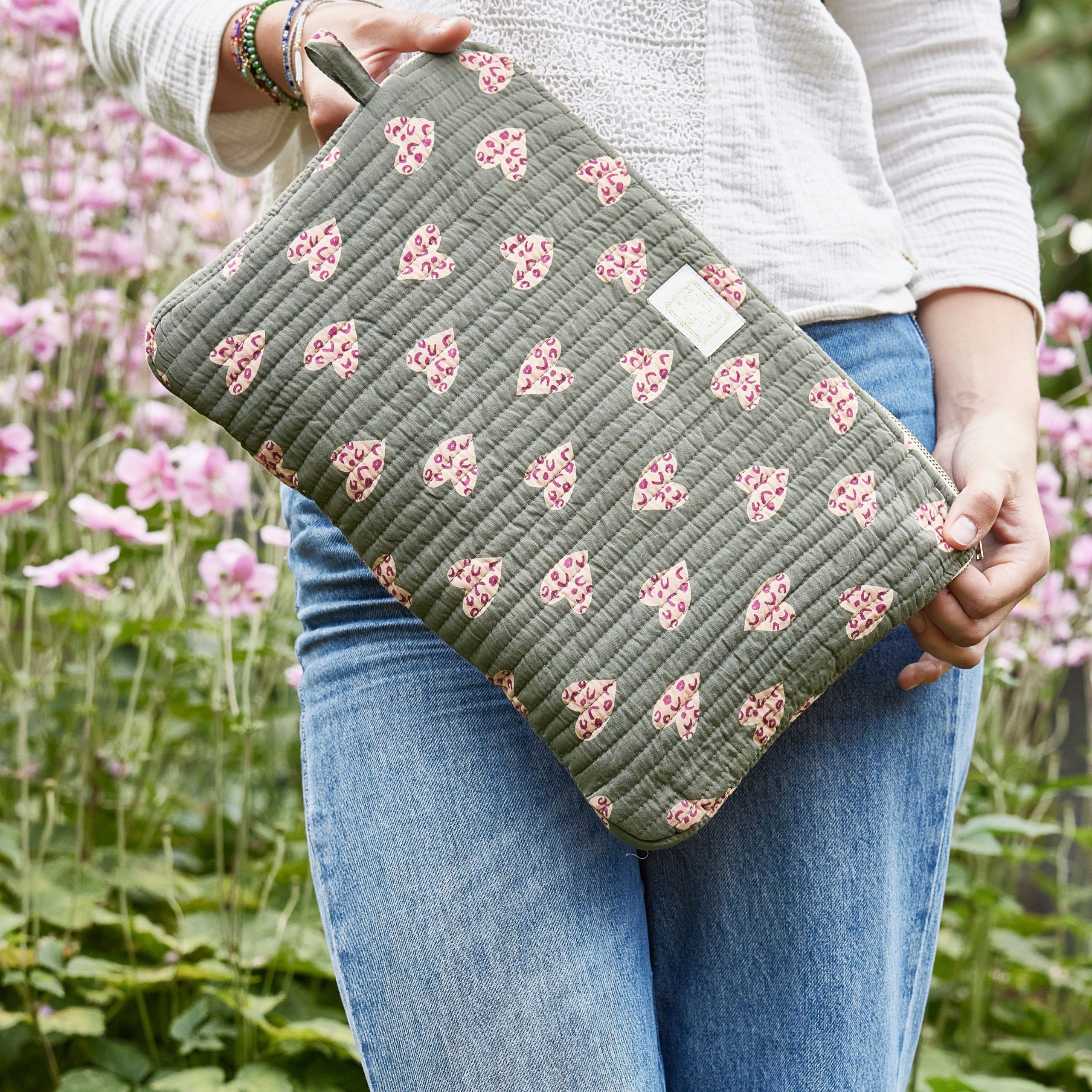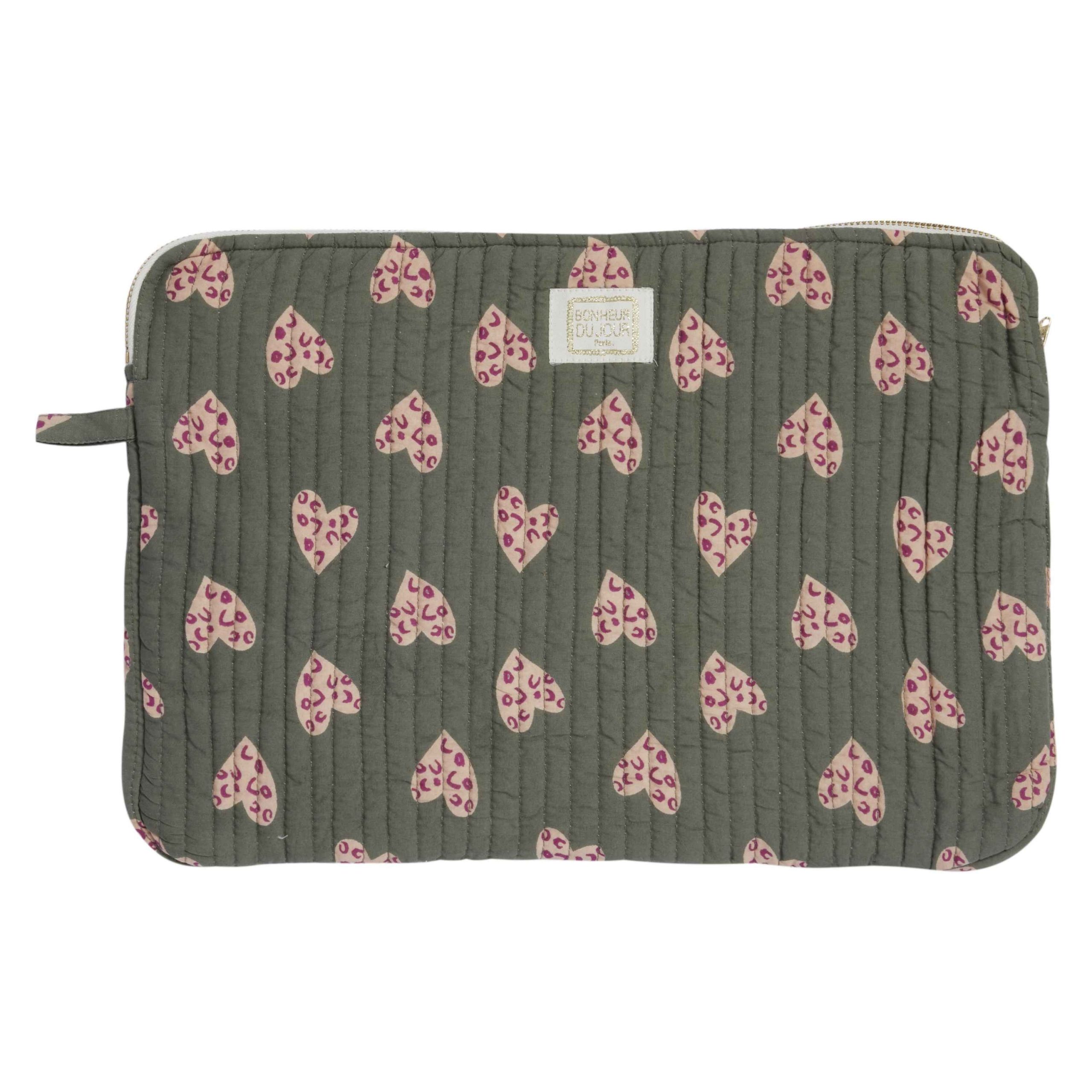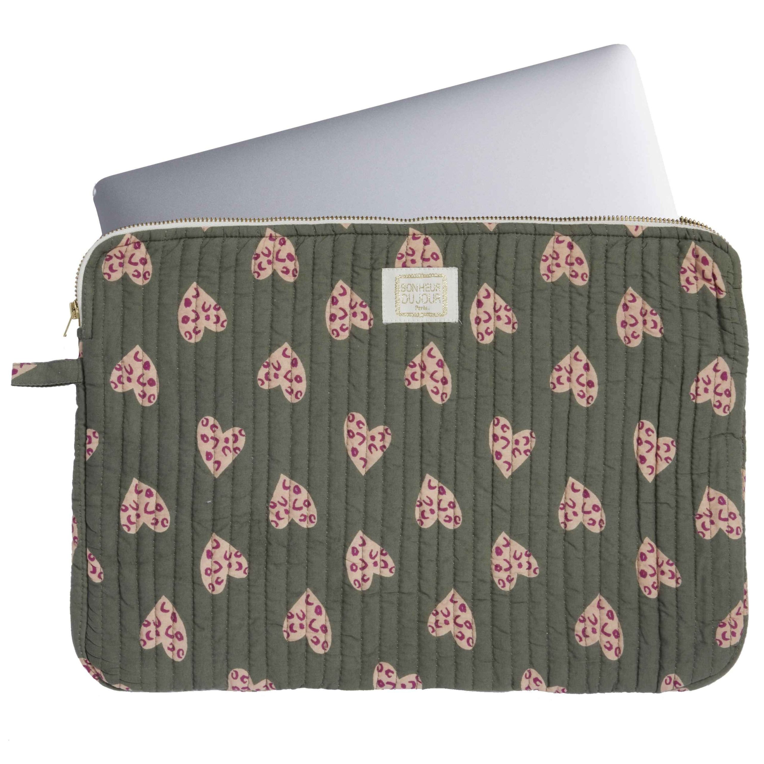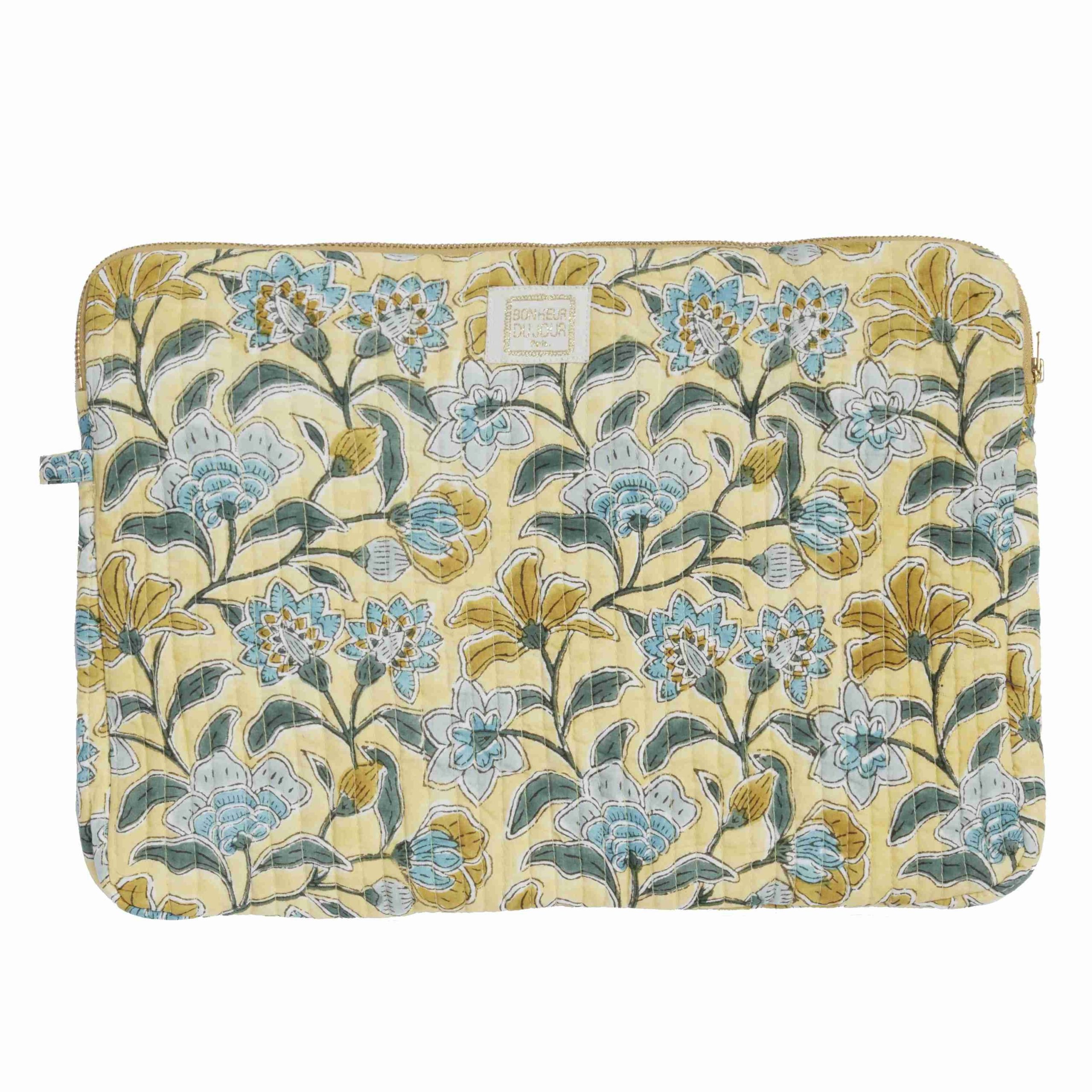 Les housses d’ordinateur Bonheur du Jour sont matelassées d’une surpiqûre verticale et fermées par un zip, pour une protection idéale. Votre bureau nomade sera agrémenté de touches de poésie et bohème.