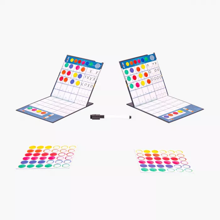 Trouvez rapidement la combinaison secrète de votre adversaire grâce à deux plateaux aimantés, un crayon effaçable et des magnets de six couleurs différentes. Ce jeu de réflexion et de logique pour deux joueurs est parfait pour occuper les longs voyages !