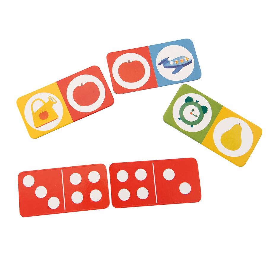 Cette boîte de jeu contient 28 dominos imprimés recto et verso. 2 à 4 joueurs peuvent se réunir autour d’une partie qui consiste à associer les images ou les chiffres à tour de rôle. C’est celui qui place le plus de dominos qui gagne.