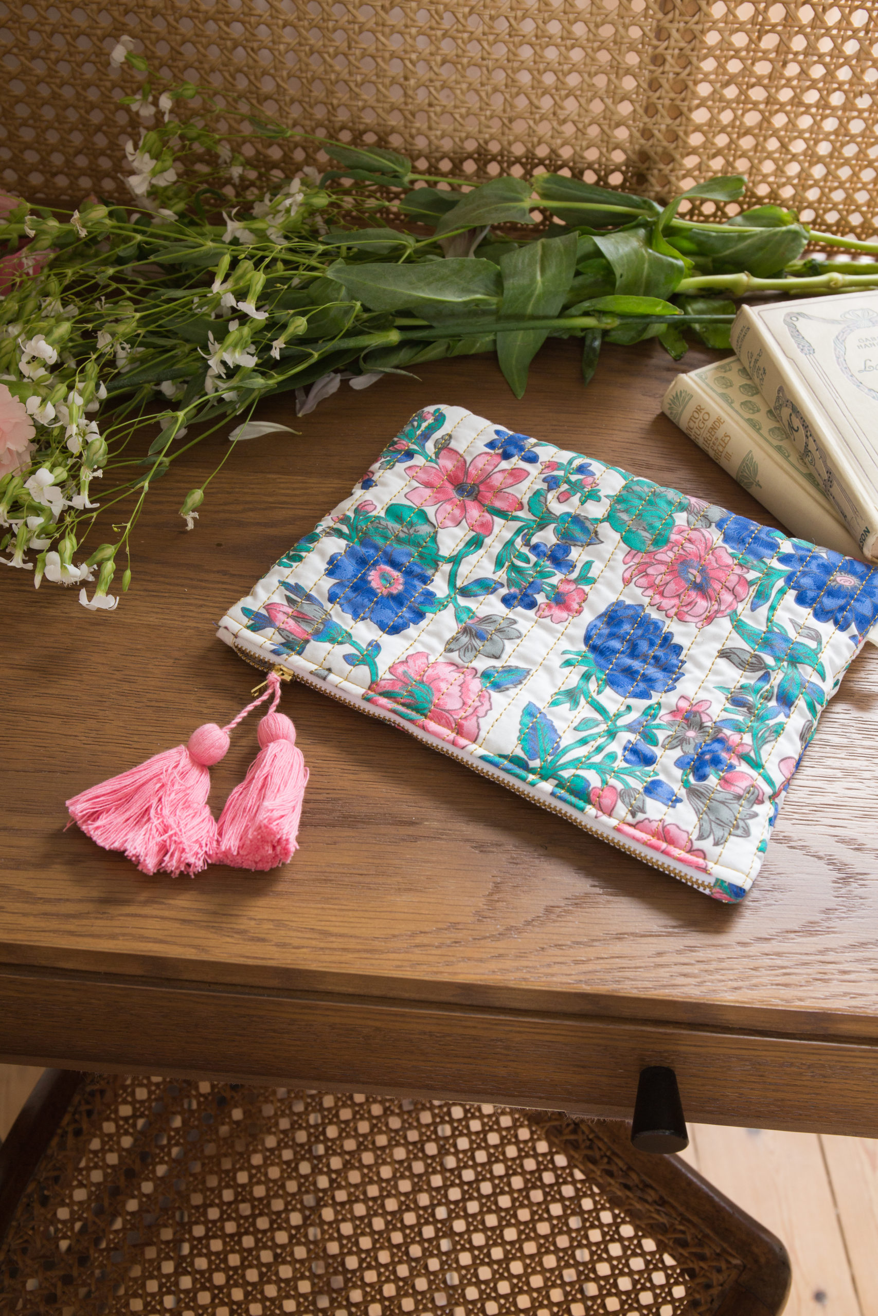 Cet accessoire à la fois pratique et empreint de style bohème est une pochette matelassée ornée de pompons, un incontournable au quotidien. Idéale pour ranger ses petites nécessités ou l’utiliser comme un grand portefeuille, elle devient rapidement indispensable et ne nous quitte plus. Que ce soit pour offrir en cadeau ou pour se faire plaisir, c’est un choix sûr !