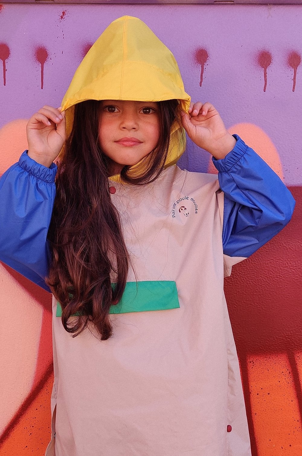 Les ponchos de la marque Poule Party, old school, ont été imaginés avec des couleurs pour donner vie à cet accessoire souvent trop triste. L’objectif de Poule Party était de trouver des associations afin de plaire aux parents mais aussi et surtout aux enfants.