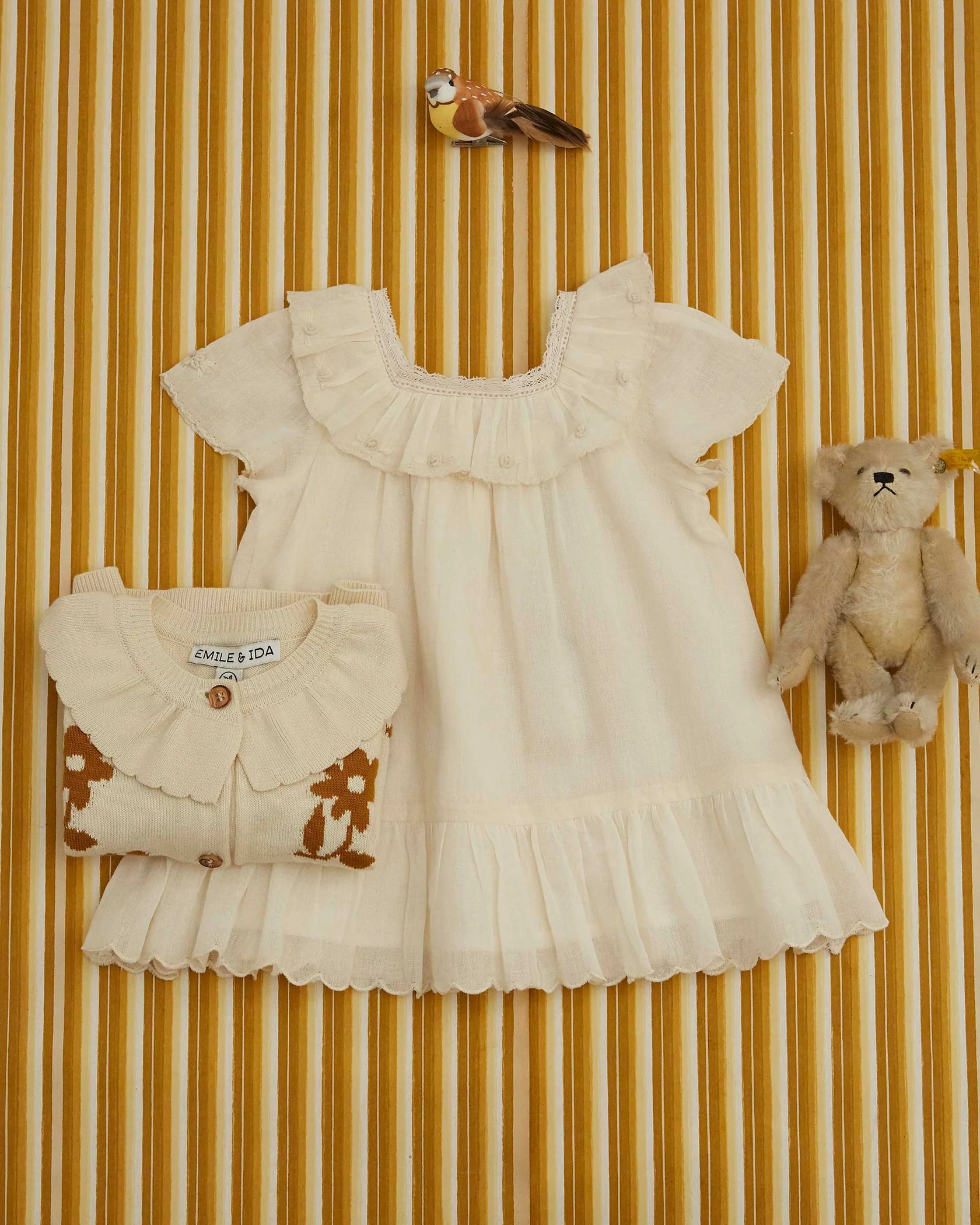 ROBE COTON BRODERIES FLEURS ECRU/6M