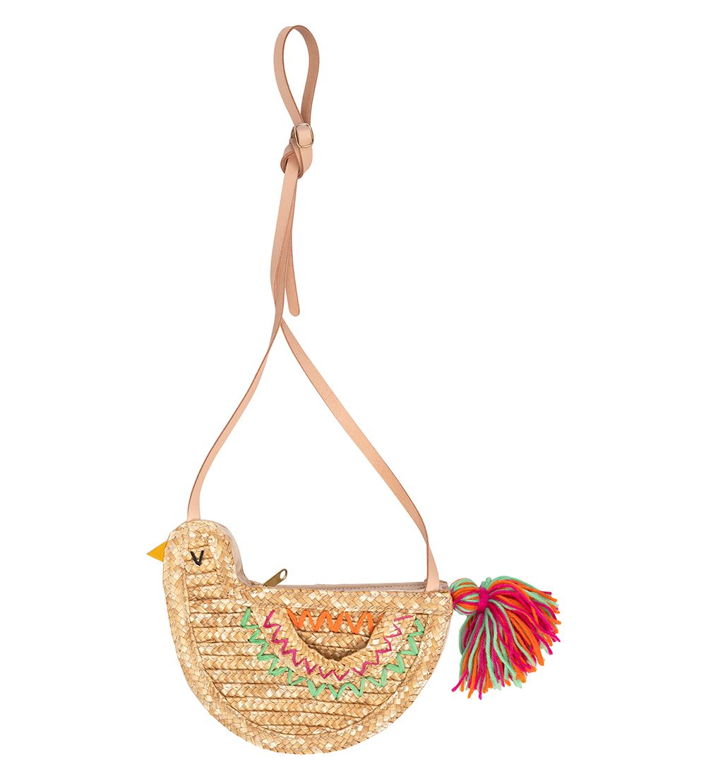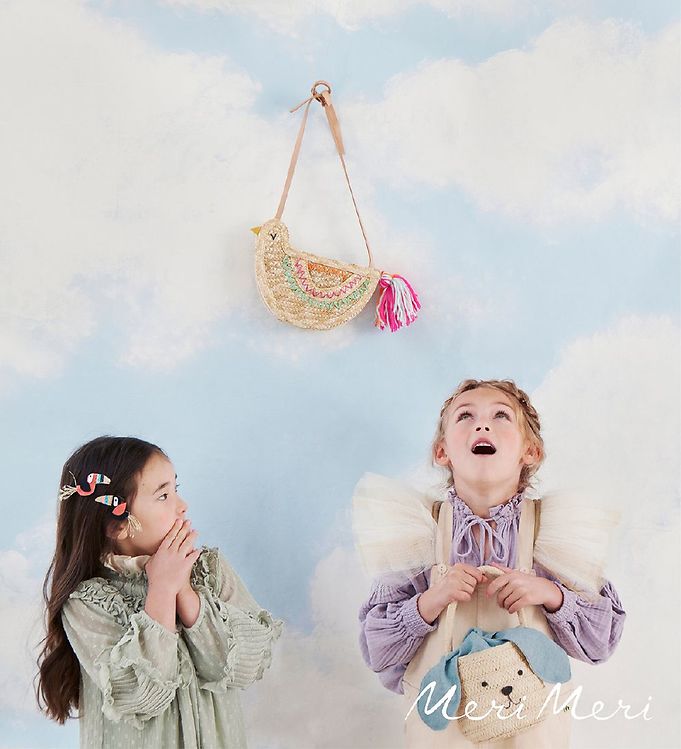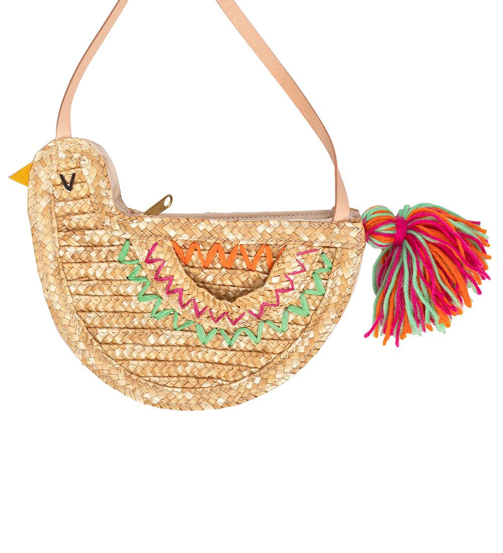 Magnifique sac à bandoulière Meri Meri, qui représente un doux oiseau endormi. Le sac à bandoulière est magnifiquement tressé en paille et possède une queue de pom-pom douce en violet, menthe et orange et est réalisé avec des appliqués en rose, blanc, vert et jaune.