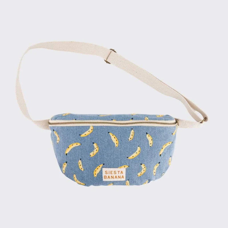 Ce sac banane en toile denim avec un imprimé bananes est un accessoire pratique et tendance. Il est conçu pour être porté autour de la taille, offrant ainsi une liberté de mouvement optimale. Le motif bananes ajoute une touche ludique et fruitée à ce sac. De plus, il est agrémenté d’une étiquette “siesta banana” qui ajoute une touche d’originalité et d’humour à l’ensemble.