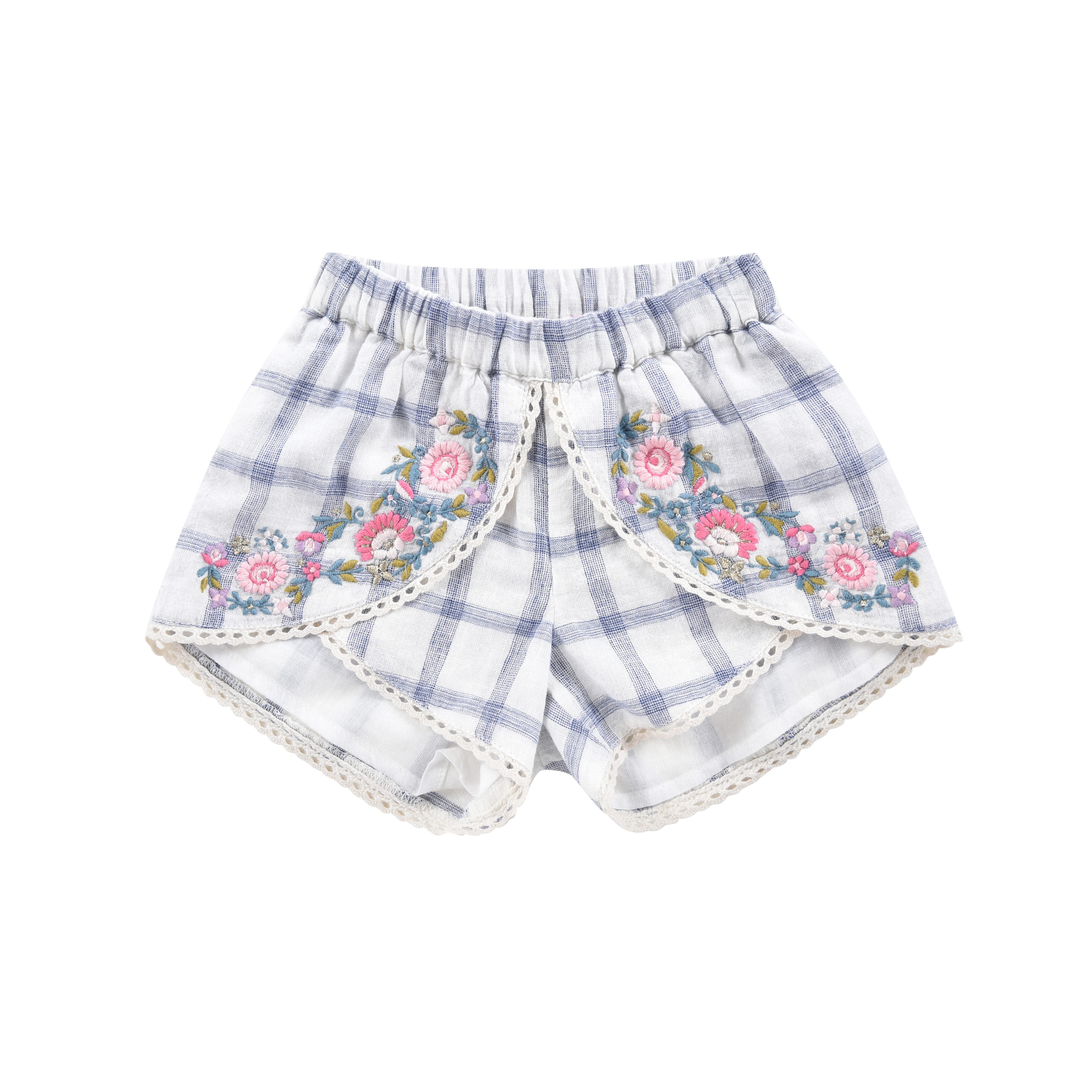 SHORT CARREAUX BRODERIE FLEURS/24M