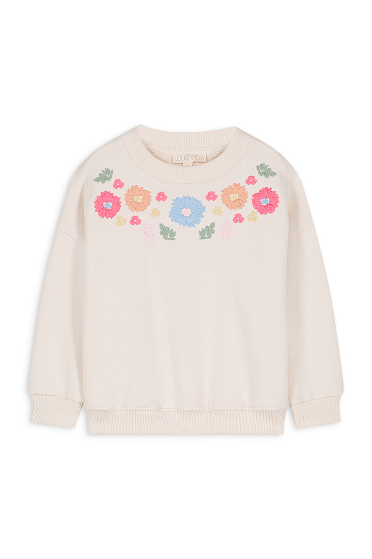 SWEAT BRODERIE FLEURS CREME/6M