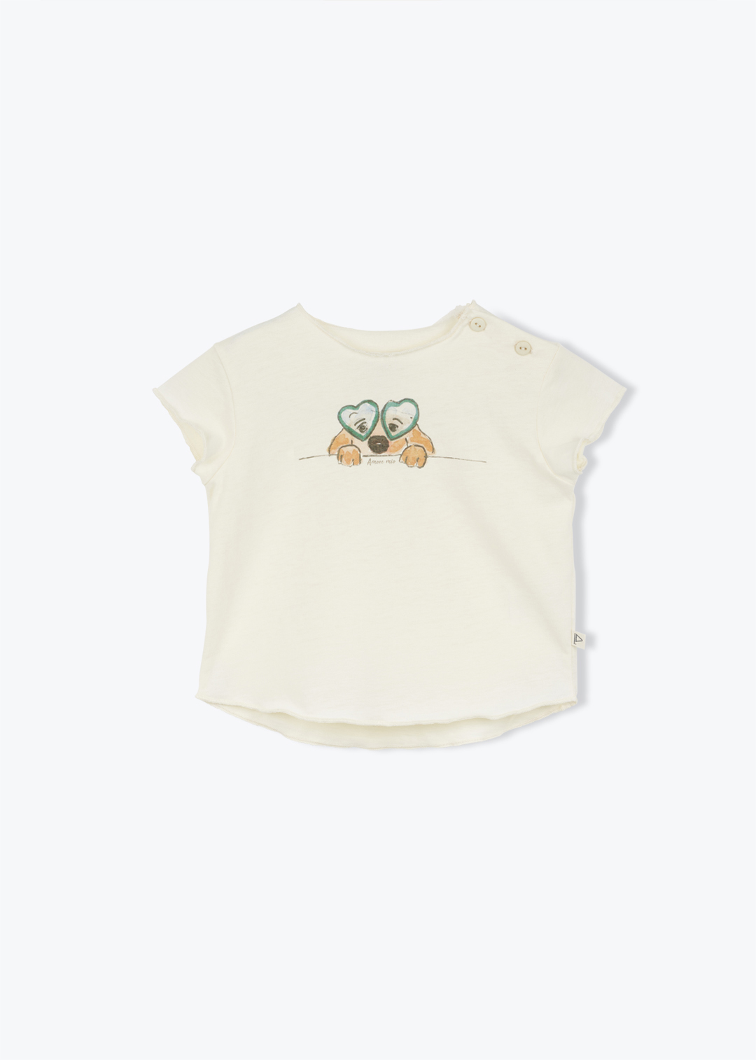 Célébrez l’amour avec cet adorable tee-shirt bébé “Amore mio”. Confectionné dans un coton bio écru d’une douceur incomparable, ce tee-shirt est le compagnon idéal pour votre petit trésor.