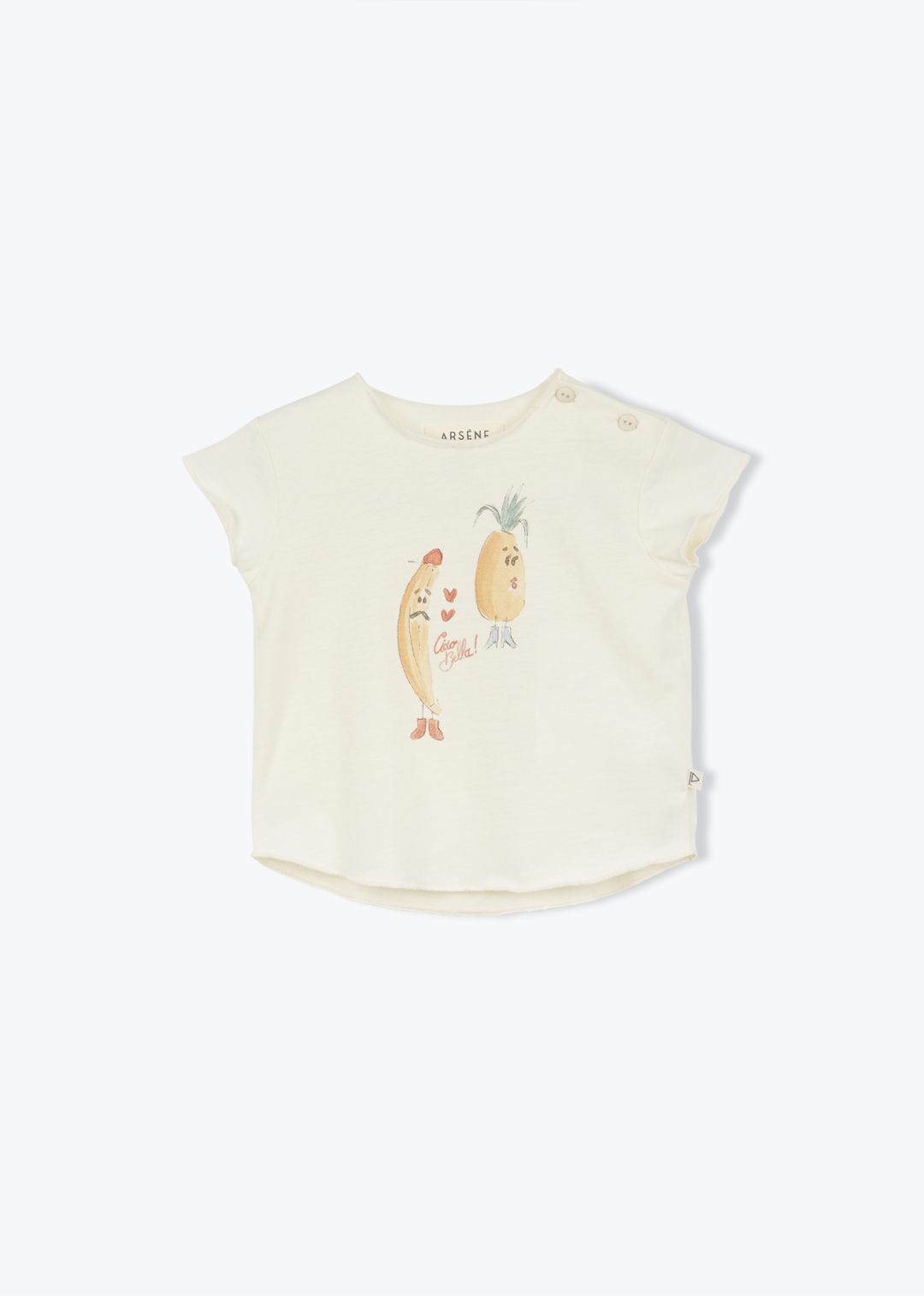 Les finitions en point de surjet au col, aux bas de manches et au corps ajoutent une touche de qualité à ce vêtement. L’ouverture boutonnée à l’épaule facilite le passage de la tête de bébé lors de l’habillage, rendant ce tee-shirt pratique et fonctionnel pour les parents pressés.
