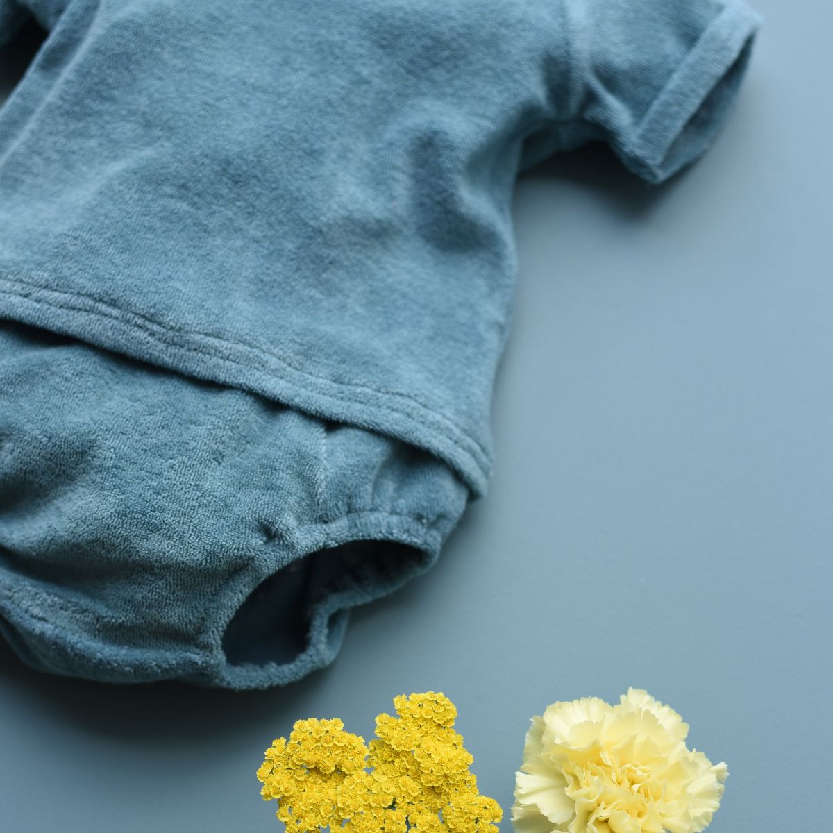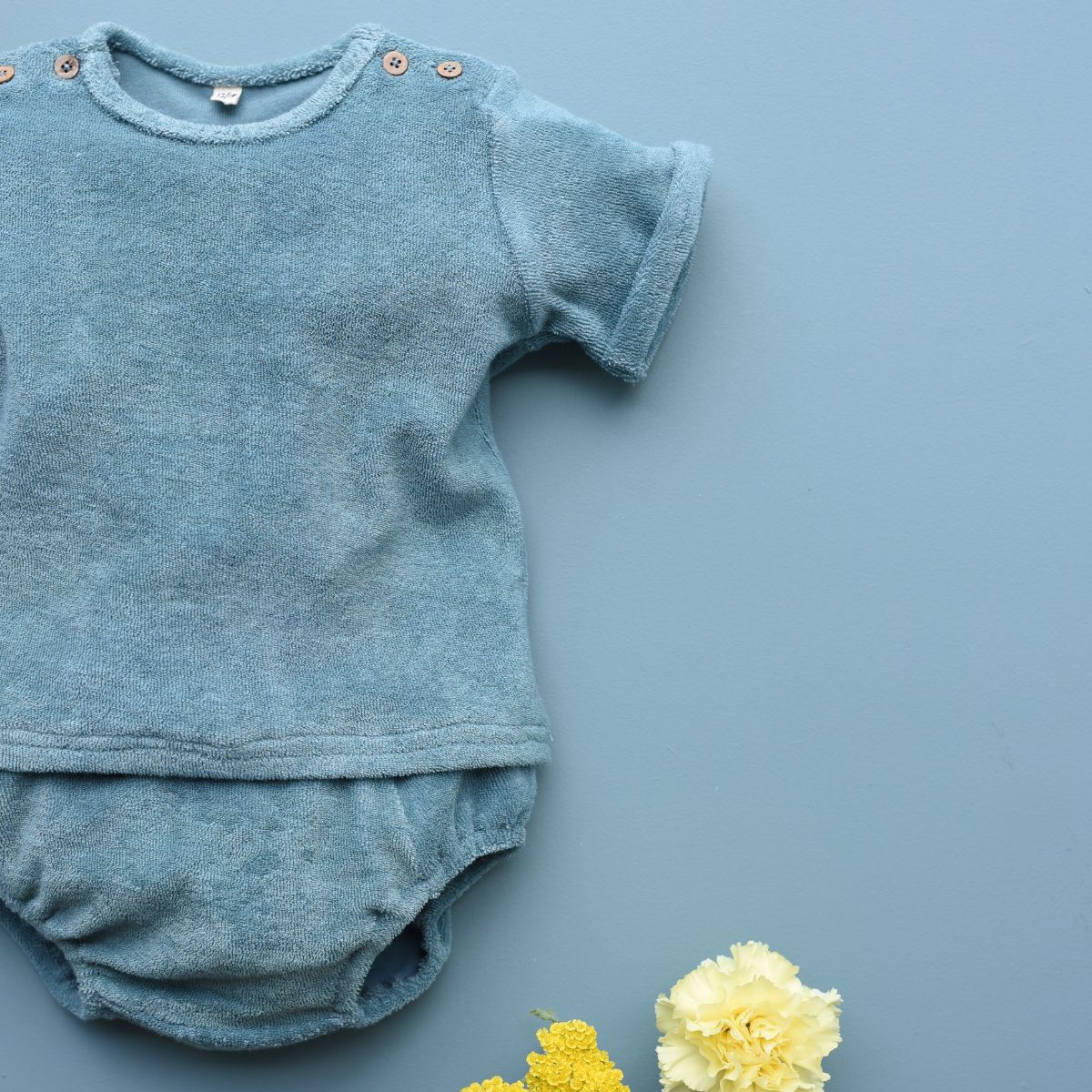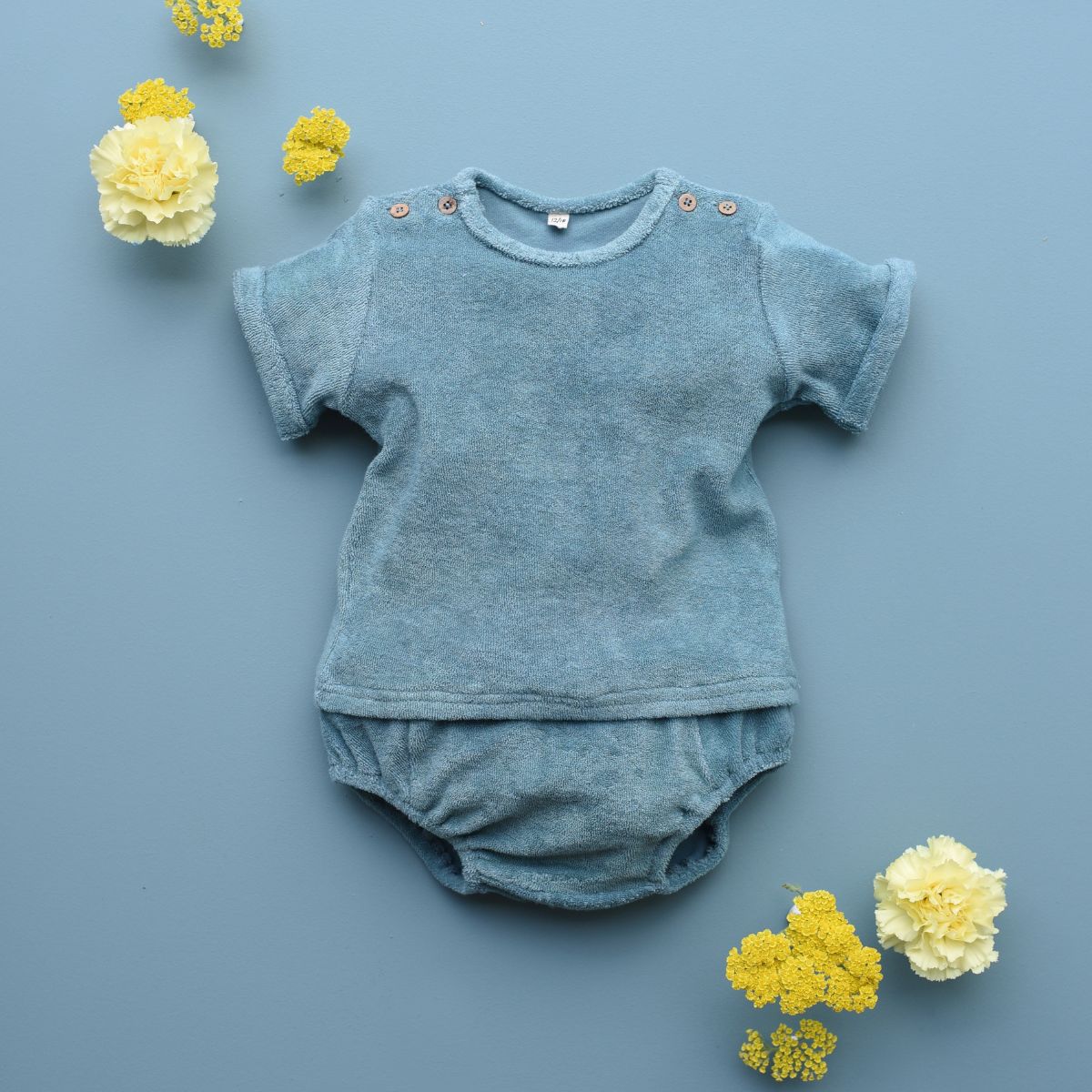Ce petit T-shirt en éponge affiche un style ultra tendance et polyvalent, convenant aussi bien aux garçons qu’aux filles. Il sera adorable en total look éponge avec le bloomer assorti, mais se marie également parfaitement avec d’autres charmants bloomers ou salopettes.
