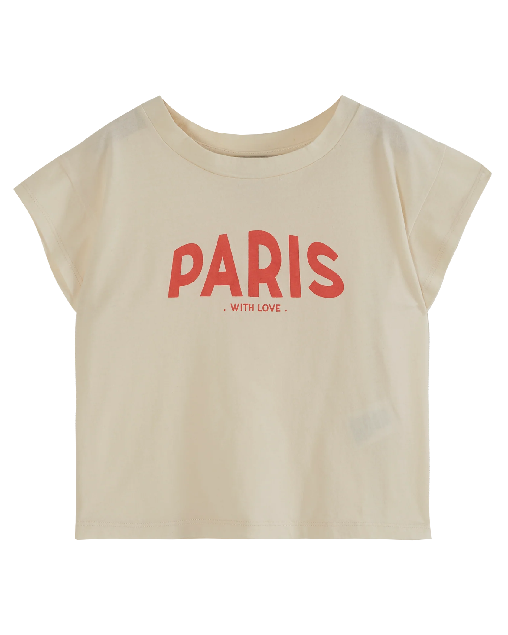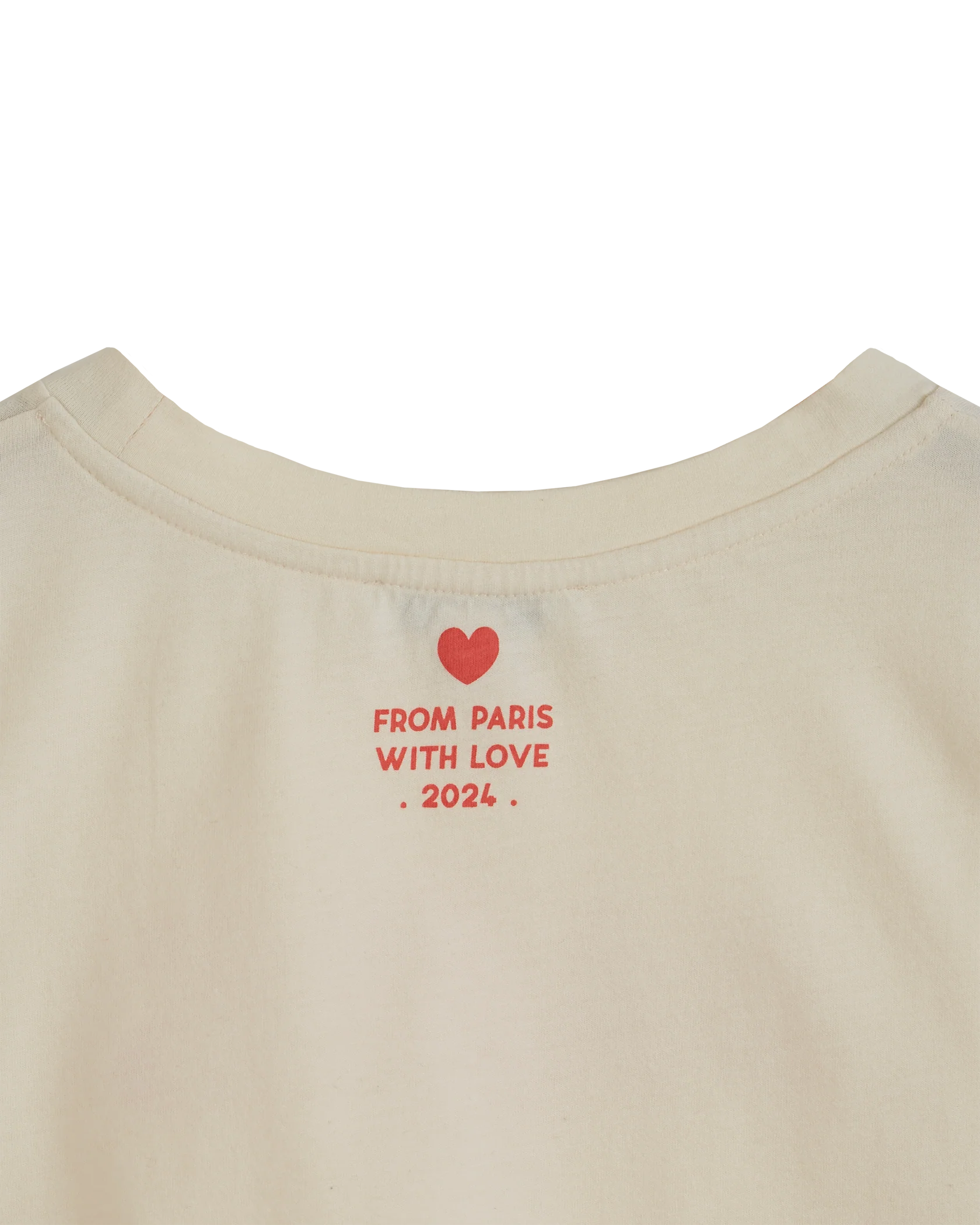 Tee-shirt en coton biologique écru, imprimé avec amour pour vous. Ce tee-shirt à manches courtes et col rond est conçu dans un coton ultra-doux, avec l’inscription rouge “PARIS with Love” sur le devant, vous permettant ainsi de devenir les ambassadrices de la ville et de diffuser l’amour.