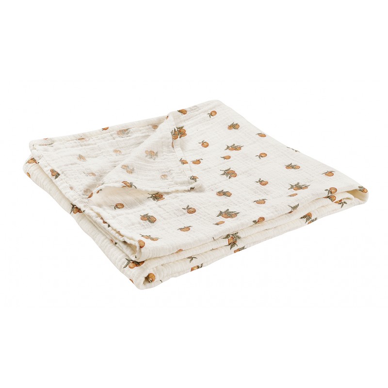 Confectionnée en 100% gaze de coton biologique certifié GOTS, elle est rembourrée en polyester recyclé : un matière légère et résistante, lavable en machine et facile d’entretien.