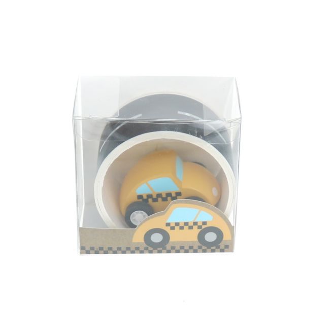 Cette jolie petite voiture en bois jaune décorée de damier noir sur les côtés va faire craquer votre enfant pour prendre le volant. Grâce à sa route adhésive inclue avec, on s’y croirait presque. Prêt à partir en vadrouille pour aller chercher les voyageurs aux quatre coins de la ville ? Avec cette petite voiture jaune typique des taxis anglais ou New-Yorkais, c’est la grande aventure !
